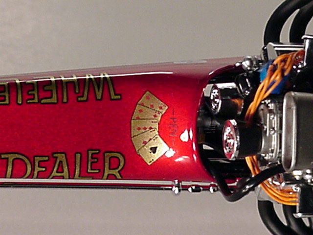 Typical of front-engine dragsters of the 1960's, the "Wheeler