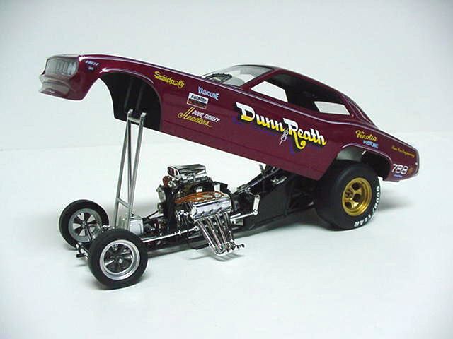 Jim Dunn's 1971 Dunn&Reath 'Cuda F/C Bob Frey Remembers... "One of the great things about drag racing is that there is no "right way" to do anything. The challenge of making your car go faster than the other guy's has been with us for as long as we've had the wheel, and that's a few years now. That's why, when Jim Dunn came out with his rear-engine funny car in 1972, most people were a bit skeptical, but after the "Supernationals" that year, most of those skeptics became believers. Jim Dunn, the fireman from LaMirada, California, figured that if the dragsters could run better with the engine in the rear, then so could the funny cars. The problem was that no one had ever been able to make one of these creations competitive before; in fact, they could hardly keep them on the ground literally! But, after a few false starts, "Big" Jim came to Ontario Motor Speedway and did what had previously been deemed impossible; he won the sport's biggest race in the sport's strangest car. The guy who used to race a short wheelbase Volkswagen with a Chrysler motor in it, had made a rear-engine funny car that could not only compete with the conventional cars, it could beat them. And to make matters even sweeter, in the first round of that great race, Jim beat Don Prudhomme who was debuting a brand new, state-of-the-art car that came complete with low aerodynamics, louvers in the hood and special bubbles over the front wheels for clearance. So much for state of the art, huh?" - Bob Frey (October 2002) Legend, hero, icon, husband, father, grandfather, this is Jim Dunn. Born March 28th, 1934 in Artesia, Ca. Jim now resides in Long Beach, Ca. with his wife Diane. Jim was a Los Angeles County Firefighter for almost three decades beginning in 1969 until his retirement in 1994. Early in the 50's drag strips around Southern California were coming into prominence. It was on these tracks Jim began his racing career. Highly regarded and feared as a driver, Jim raced every kind of car one can imagine, enjoying success at each level. Success on American soil is only part of the legacy. Jim has raced on an international scale as well, setting and holding track records in both Japan and Australia. Jim's records as a driver and crew chief are astounding. During his career he has amassed an incredible list of wins and records. In 1981 he was named Pro Driver of the Year and finished 10th in the NHRA points standings. In '72 he won the Supernationals in Ontario, Ca. with his radical rear engine Barracuda, something many believed could not or would not happen. Jim proved them wrong. Jim Dunn racer became Jim Dunn movie star in 1972, when his year of racing was documented in the movie "Funny Car Summer". Jim was runner-up at the U.S. Nationals in 1981 and would win the World Finals in Irvine, Ca. that same year. In 1990 Jim retired from driving, becoming crew chief on the Snickers funny car. In 1992 Jim would once again have his own team . Many believe the greatest accomplishment a team can enjoy is a victory in Indy at the U.S. Nationals. Jim, Diane, Jon and the entire team felt that exileration in 1999 when they won at Indy. The year 2000 saw Jim celebrate his 50th year in racing, a milestone few will reach. We thank Jim for everything he has done to make drag racing the sport it is today. We can only guess where our sport would be without men like him. Someone once asked "What would drag racing be without Big Jim?" We wonder! - Courtesy of Steve & Kathy Dull (www.nitrosteve.com) Limited edition of 5000 pieces. £66-99 Home |